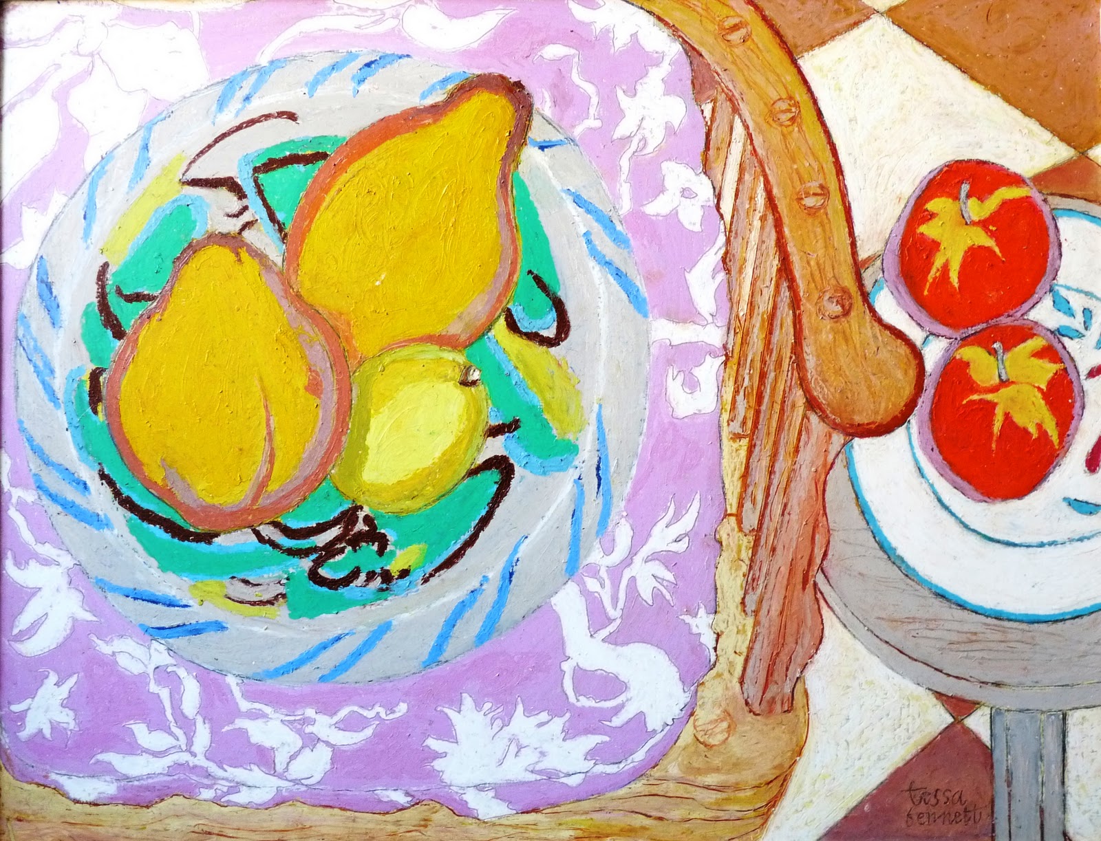 Camper shoes, Chinese 18th century tankard, tulips.................... painting