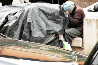 | Conspicuous consumption. A shop window located near the woman 'down and out' photographed above. |