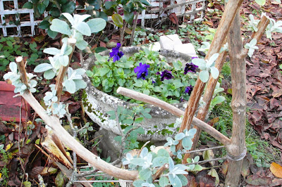 Winter pansies and sprouting buddliea.