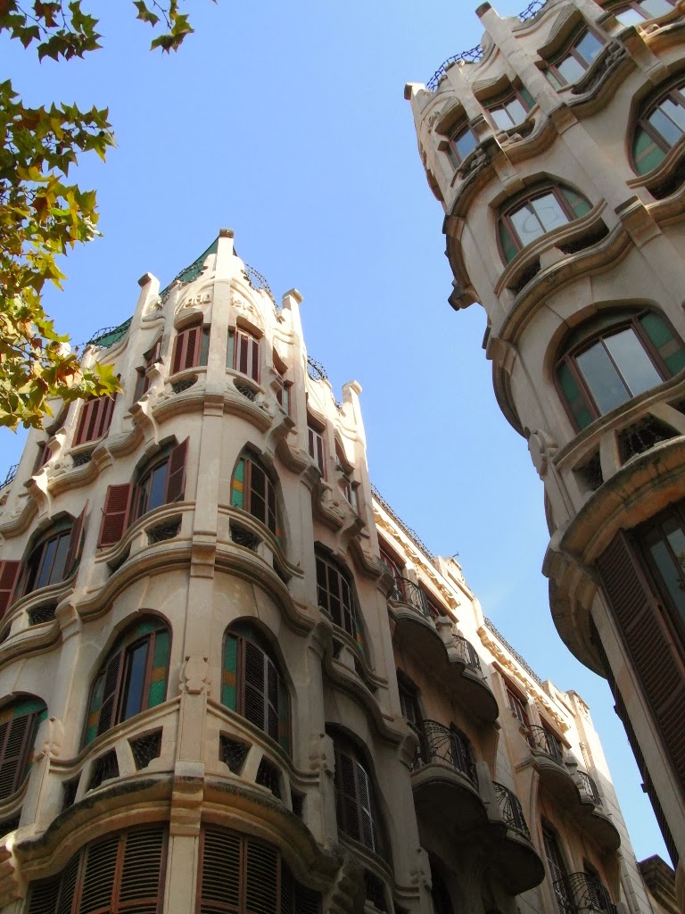 | Photographs of fine Art Nouveau style buildings in the centre of Palma de Mallorca.  Art Nouveau is a style of art/ architecture of c1890 - 1910. It was inspired by naturalistic forms and structures in curved lines. The famous Architect Lluis Domenech i Montaner worked in Palma and was probably responsible for the above buildings, they are delightful works of art. |