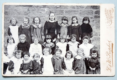 Cabinet photographs taken c1880 showing boys and girls schools in Dundee. The photographers are D & W Prophet of 23 High Street, and 59 Wellgate, Dundee. Each class of 21 children is accompanied by their form teacher. The boys look uncomfortable in their little semi-tailored tweed and velvet suits (some strangely in a 'cavalier' style!) with the stiff or huge white collars, and the girls look shy wearing their Sunday dresses with the added pinnies. One wonders, where are they or their ancestors now?! |